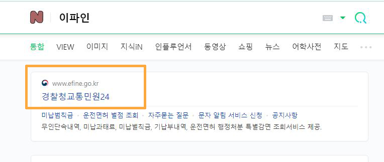 - 우선 이파인이라고 검색하시면 경찰청교통민원 24가 상단에 뜨실 거예요. 클릭 후 들어가 주세요.