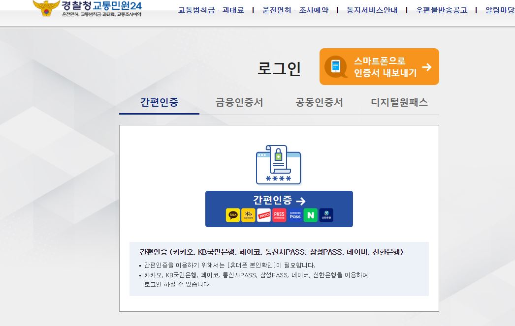- 확인하기 위해서는 로그인을 하셔야 하는데요. 간편 인증도 있고 금융인증, 공동인증, 디지털원패스도 있으니 편하신 걸로 로그인을 해주세요. (로그인을 하셔야 조회가능합니다.)