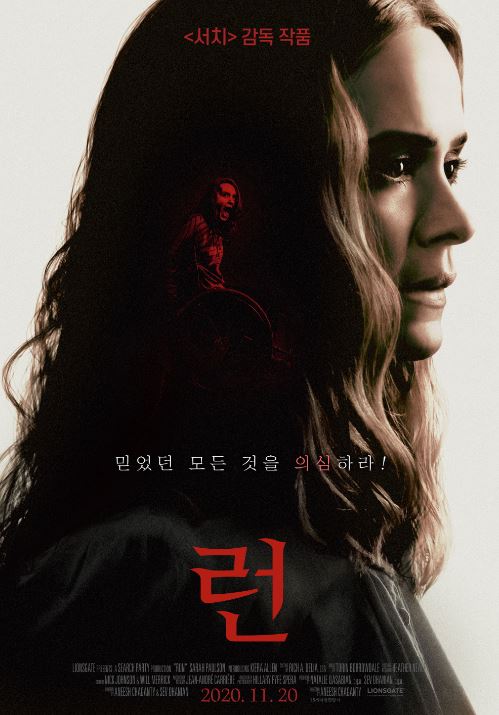 영화 런은 2020년 11월 20일에 개봉하였고 등급은 15세 관람가이며 영상 시간은 90분이다. 평점은 8.53이며 장르는 미스터리, 스릴러 영화이다. 감독은 아니쉬 차 간 티이며 출연진은 사라 폴슨, 키에라 앨런, 팻 힐리, 사라 손 외 여러 명의 배우들이 연기하였다. 영화 속에서 키에라 앨런은 다리가 마비된 걸로 나오는데 실제로 키에라 앨런은 다리의 장애를 가지고 있었으며 일어나는 다리를 사용하는 장면은 대역이나 CG를 사용하였고 감독 아니쉬 차 간 티는 영화 서치의 감독이며 서치 다음으로 두 번째 장편영화인 런을 연출하였다. 이영화는 몸에 장애를 가진 소녀가 엄마의 지나친 집착으로 인해 이상함을 느껴 숨겨놨던 비밀을 알게 되면서 일어나는 일들의 영화이다.