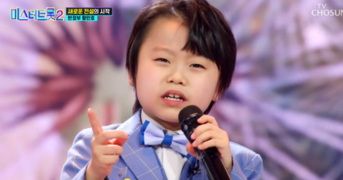 황민호는 리틀싸이로 유명한 황민우의 동생입니다. 초등학교 3학년인 황민호가 무대에서 뿜어내는 에너지는 성인 못지않고 감정을 표현하는 모습은 심사위원들의 환호를 이끌어 내기 충분했습니다. 춤에 관심이 많은 황민호는 짧은 시간 안에 빠르게 성장해 모든 사람들의 마음을 울리는 노래를 불렀습니다.
