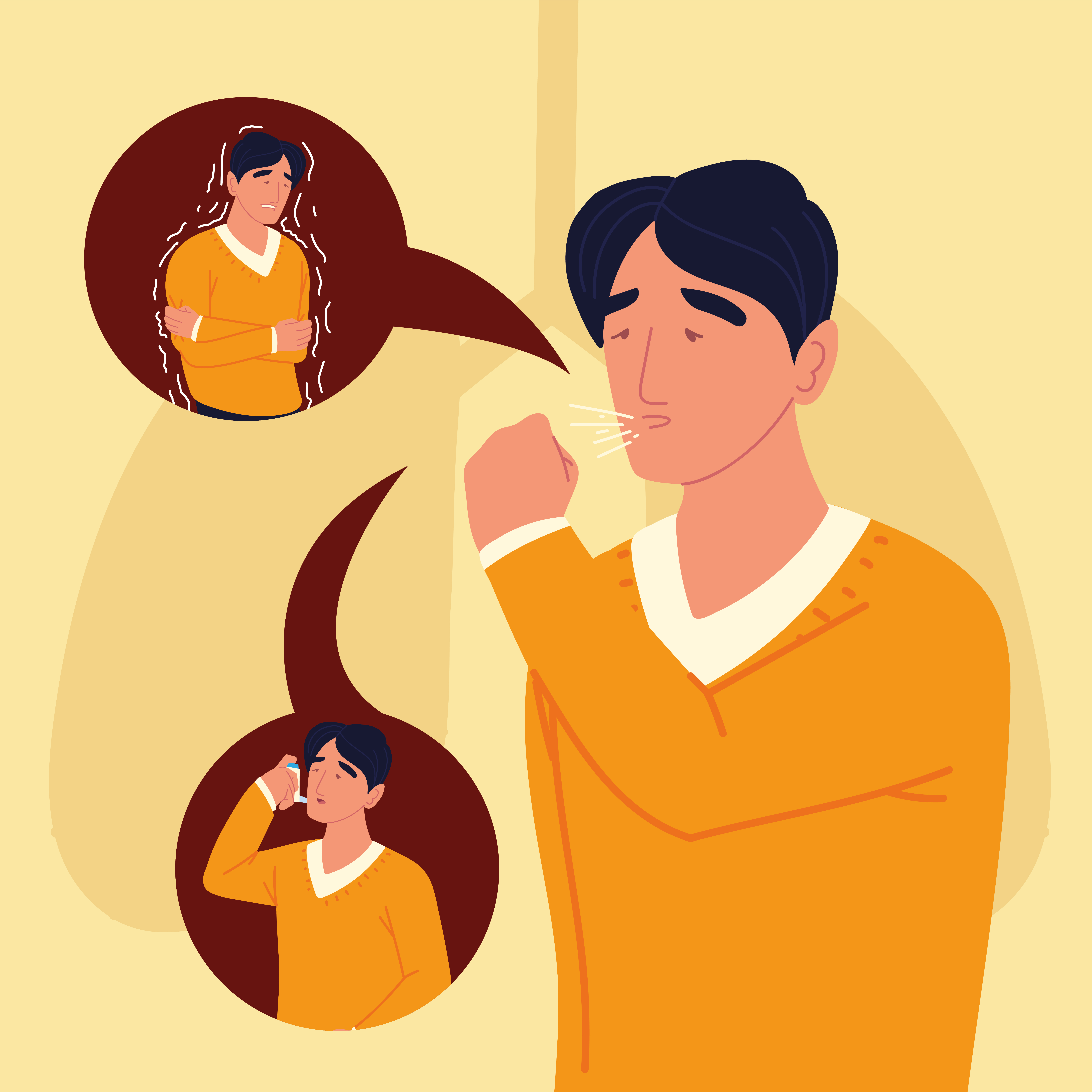 - 숨을 들이쉴 때 높은 소리의 훕소리가 나는 게 특징