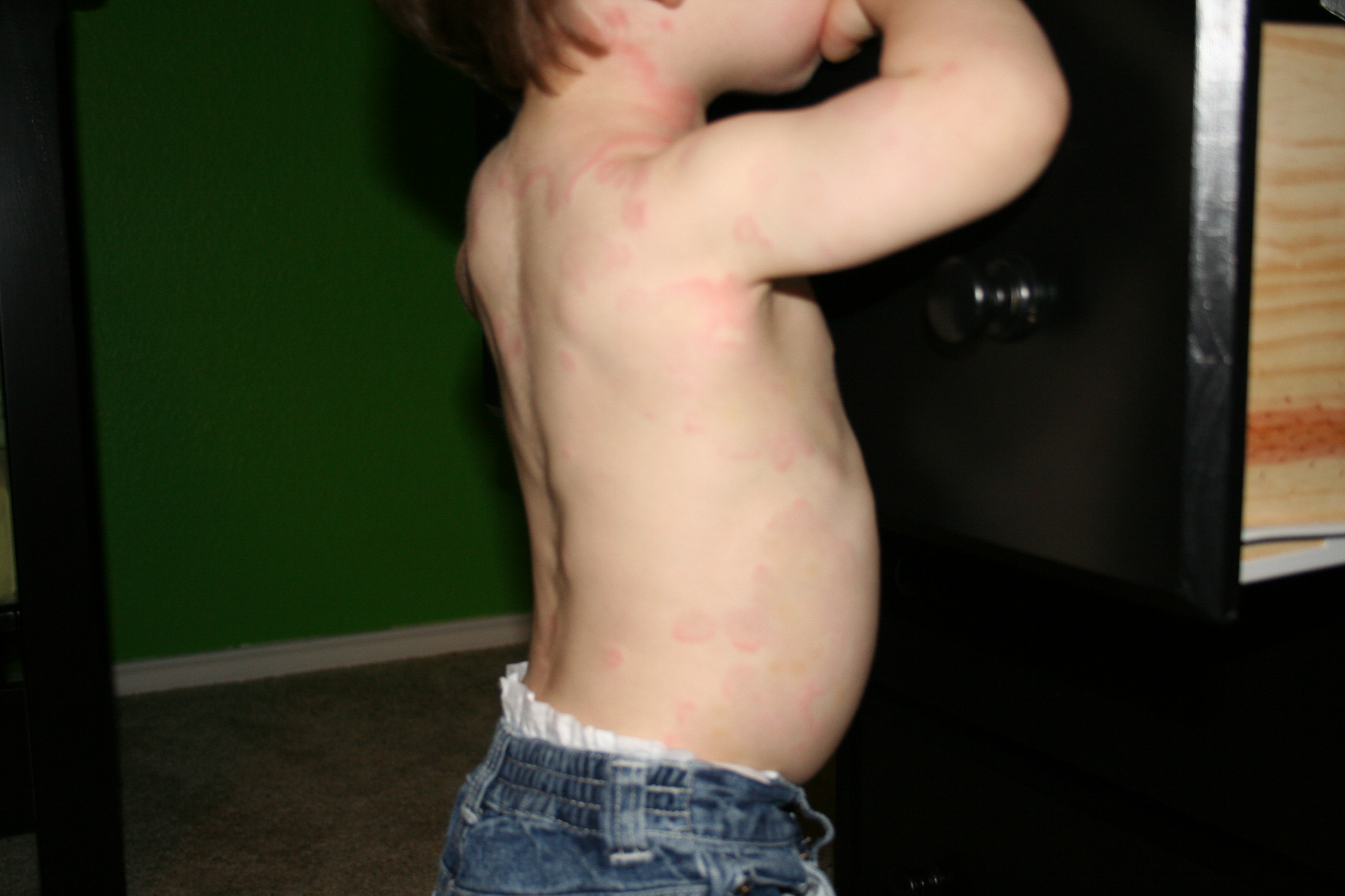 • 일반적으로 팔, 다리, 얼굴에 붉은 돌기가 피부표면에 나타나고 이후 원형으로 커지는 증상