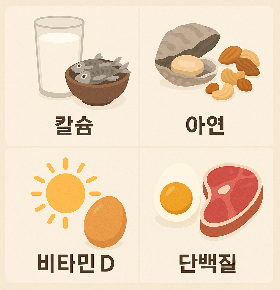 우유, 치즈, 두부 등에 풍부하지만 부족하면 보충제 고려 필요.