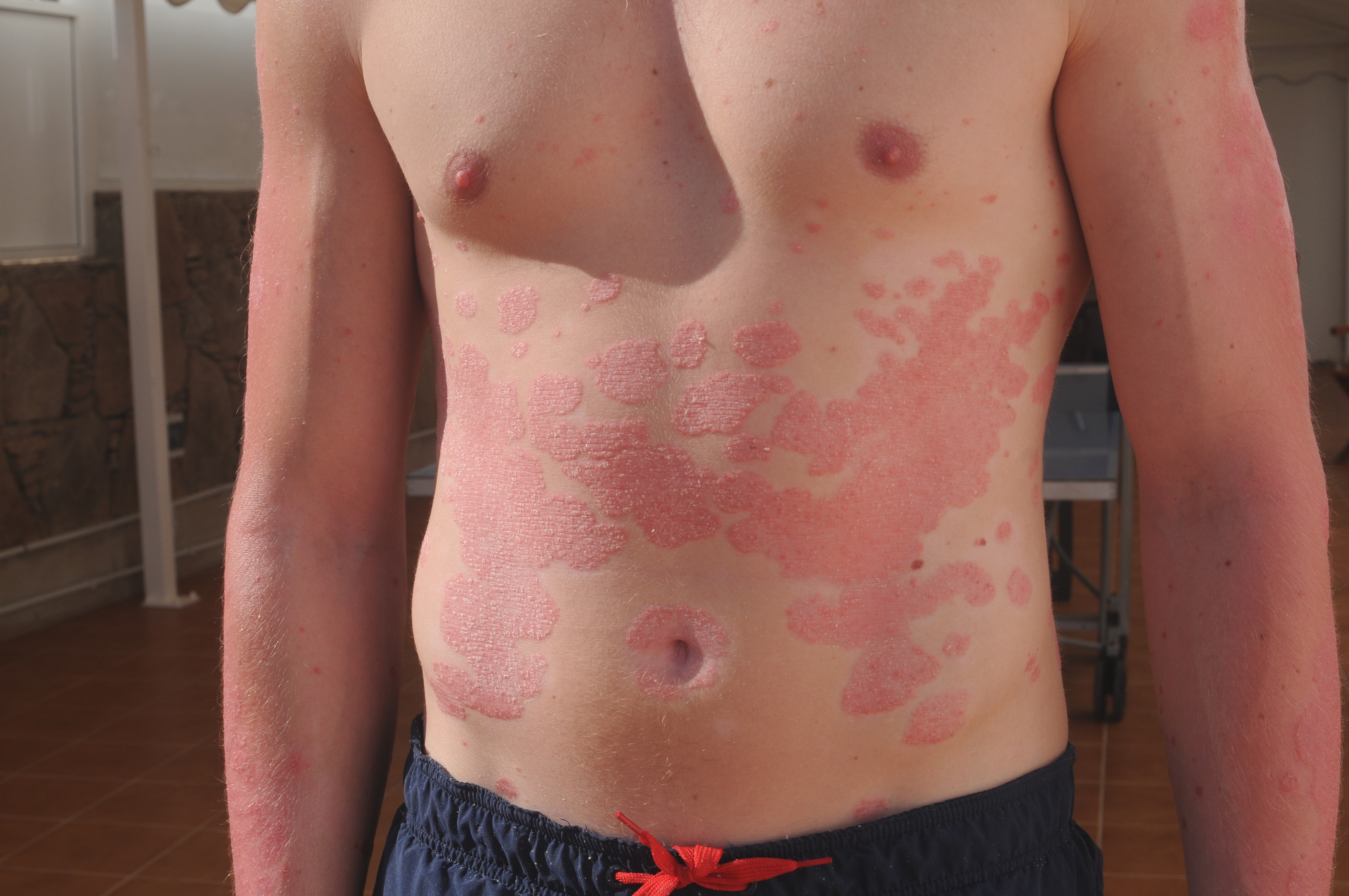 - 역 건선 : 주로 사타구니 나와 엉덩이 유방의 피부 주름에 영향을 미치며 마찰과 땀으로 악화되는 염증이 있는 부드러운 부분에 유발합니다.