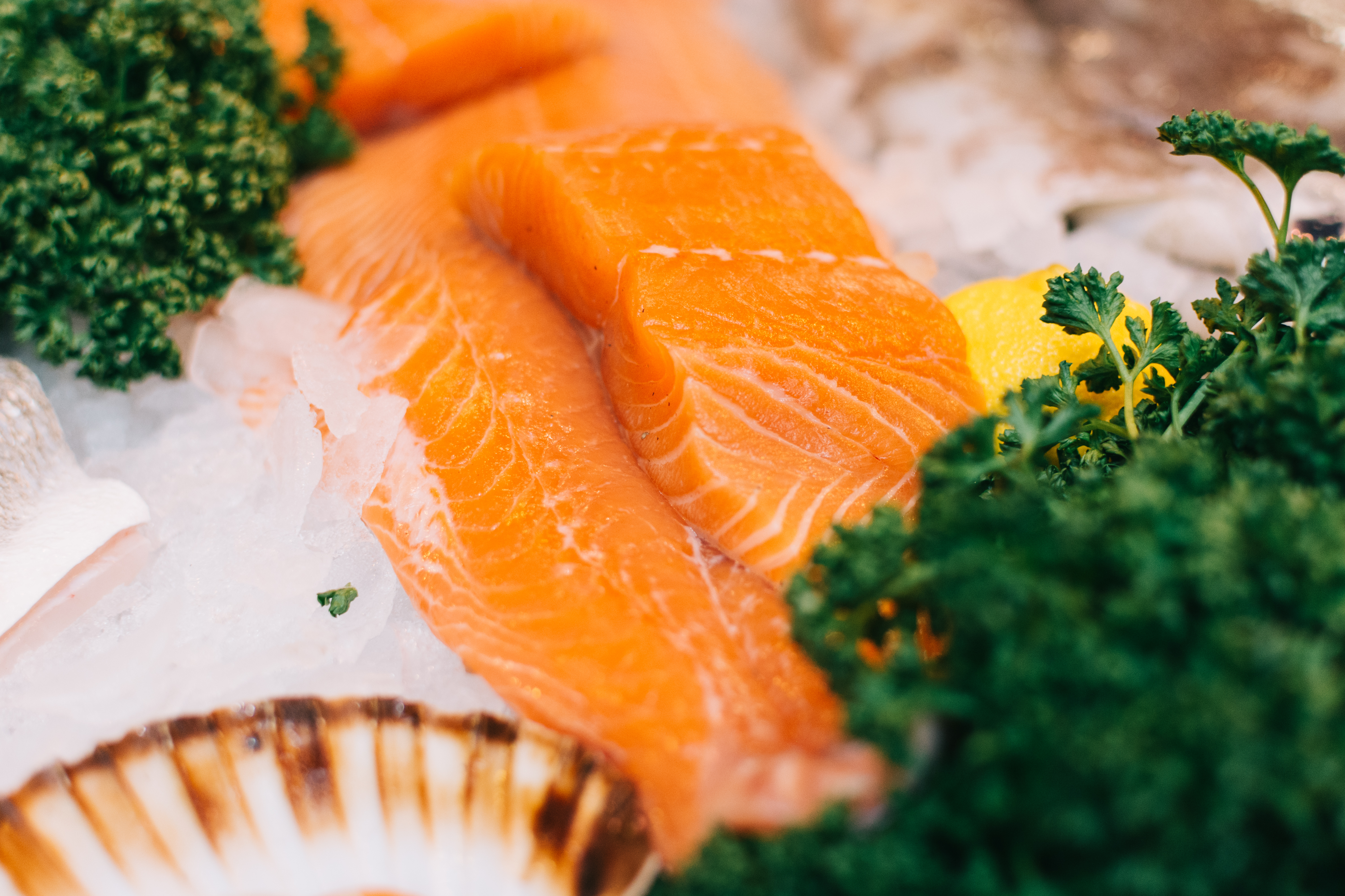 + 연어나 고등어와 같이 지방이 많은 생선은 오메가 3 지방산이 풍부해서 심장 건강에 좋습니다.